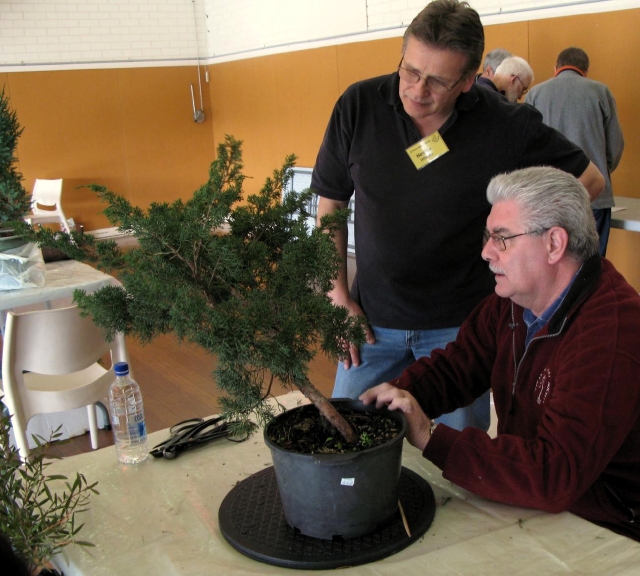 John Marsh inspecting Neville's Shimpaku |