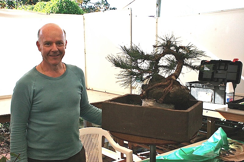 A proud Peter in front of his black pine |